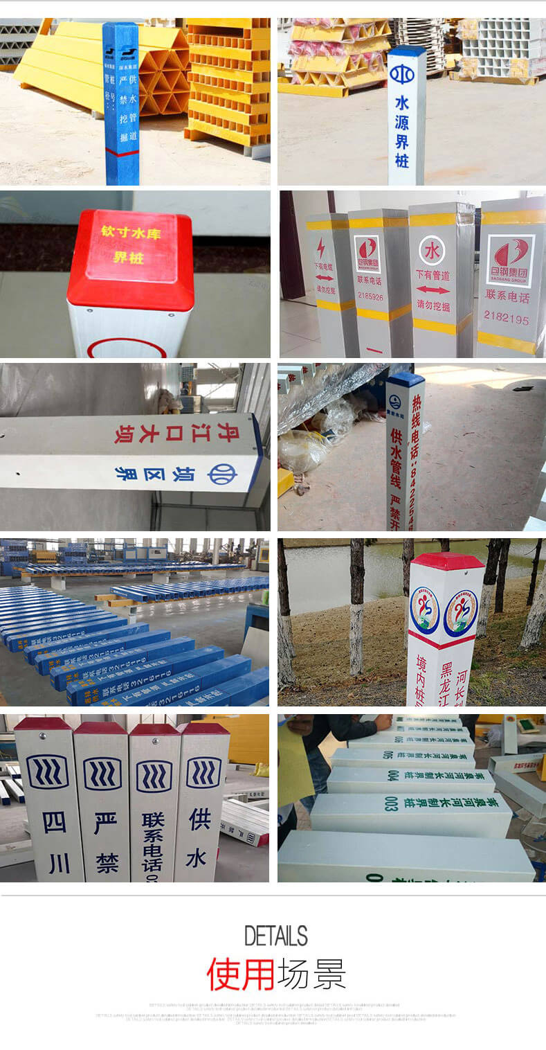 水源界樁_供水管道玻璃鋼標(biāo)志樁_下有管道警示標(biāo)識樁