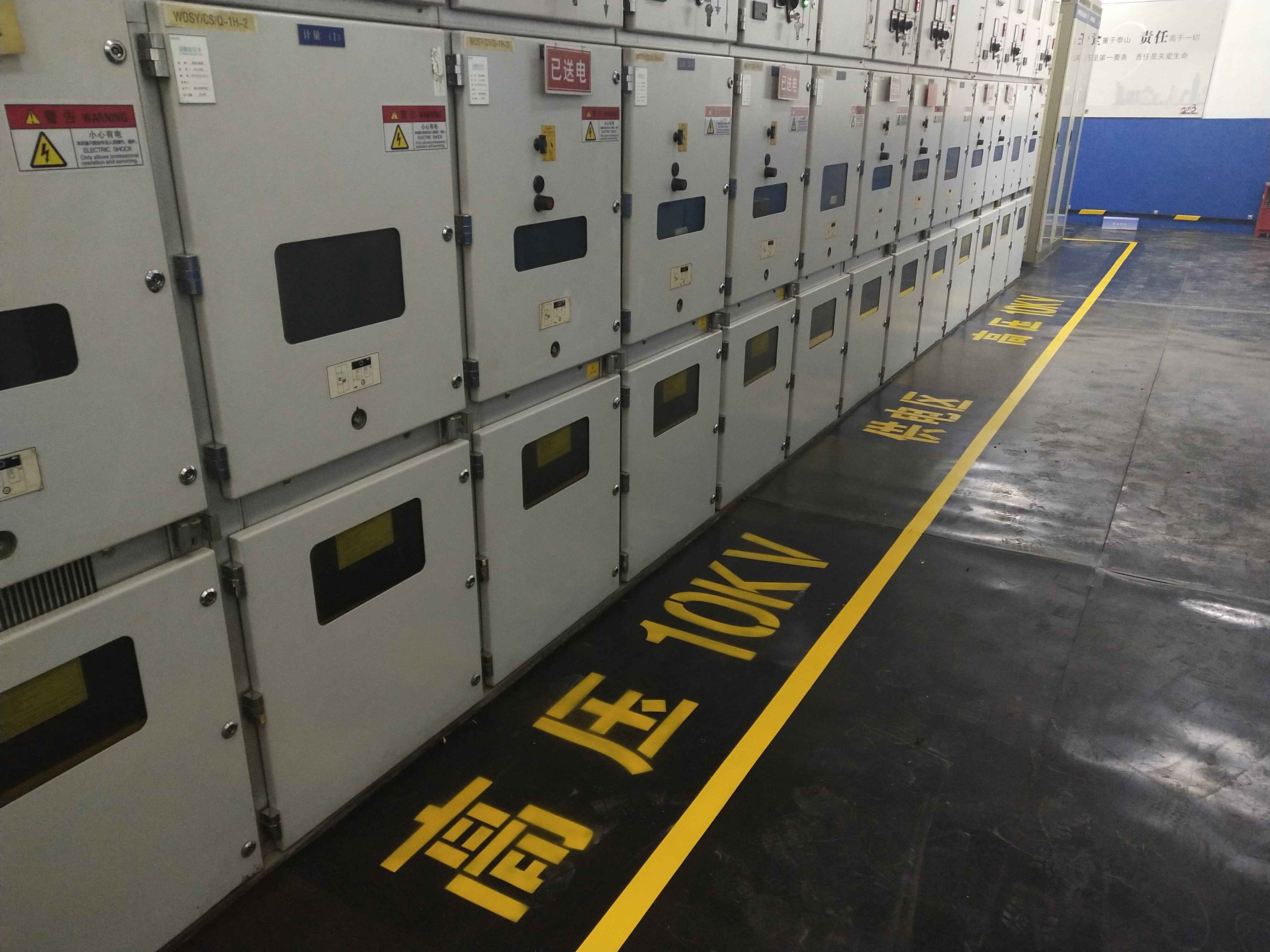 4、地面全部鋪設絕緣膠墊可以用黃色絕緣膠帶(絕緣漆)規劃出工作區域,并在內部加上相關字體,如高壓**千伏等,看起來大氣非凡,如下圖: