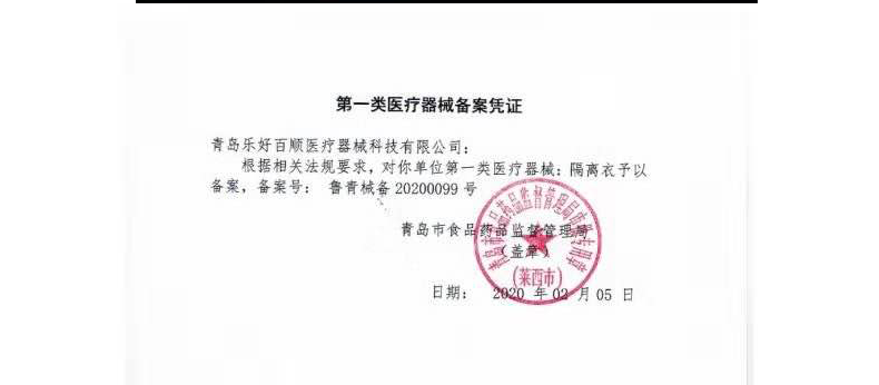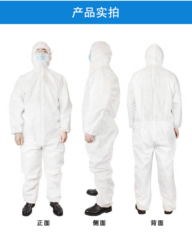 防護(hù)服由連帽上衣、褲子組成,分為連身式結(jié)構(gòu)和分身式結(jié)構(gòu)。防護(hù)服的結(jié)合部位應(yīng)嚴(yán)密。袖口、腳踝口采用彈性收口,帽子面部收口及腰部采用彈性收口、拉繩收口或搭扣。產(chǎn)品性能:防護(hù)服透濕量應(yīng)不小于2500g/(m2?d),防護(hù)服對(duì)非油性顆粒物的過濾效率不小于70%,防護(hù)服帶電量應(yīng)不大于0.6μC。其它性能指標(biāo)詳見注冊(cè)產(chǎn)品標(biāo)準(zhǔn)《一次性醫(yī)用防護(hù)服》。