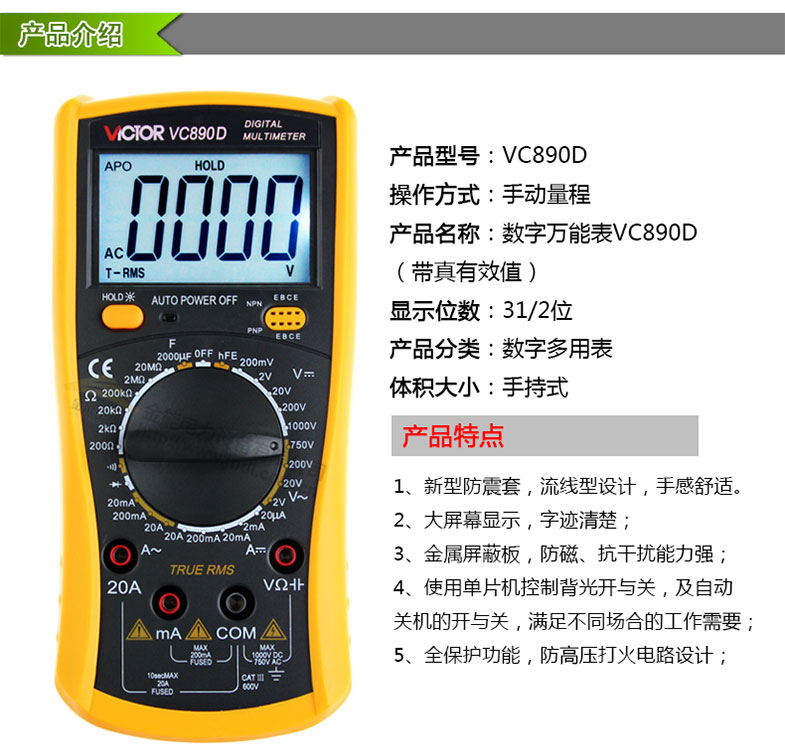 勝利數字萬能表vc890D